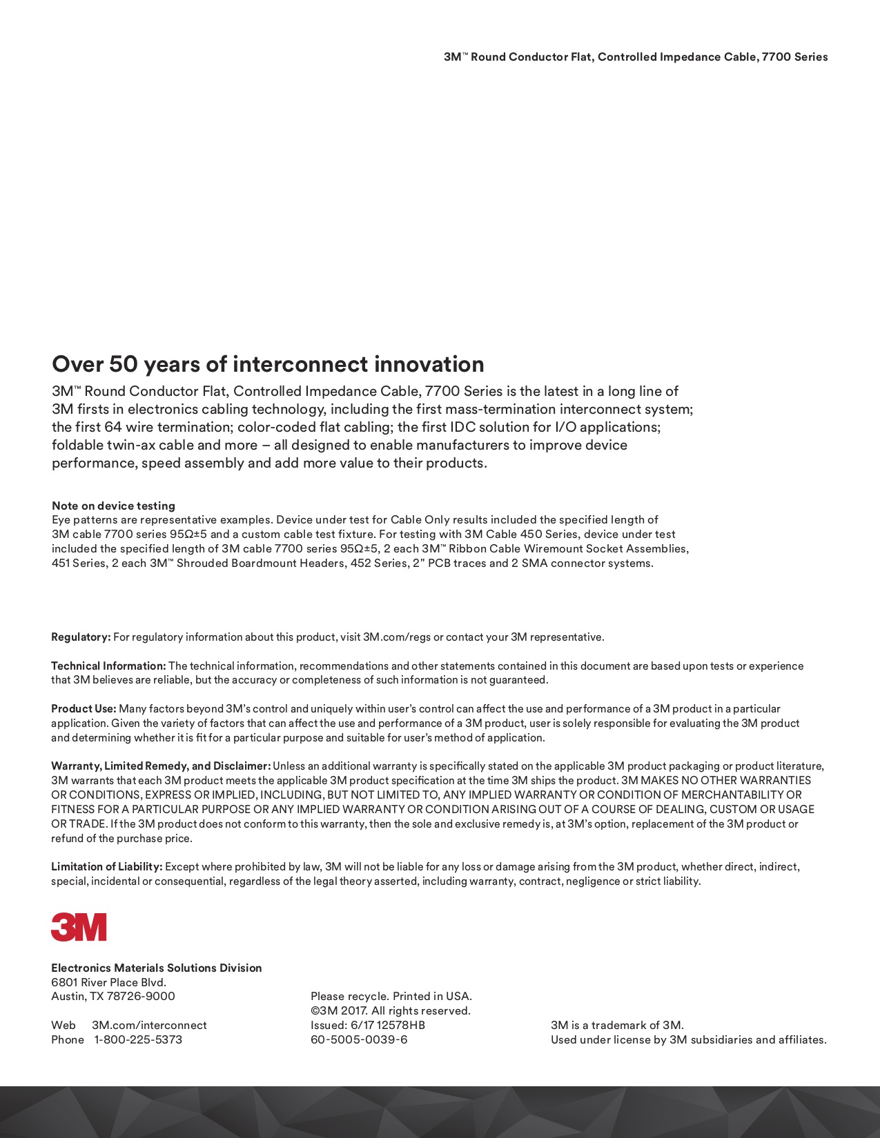 3M – ROUND CONDUCTOR FLAT, CONTROLLED IMPEDANCE CABLE, 7700 SERIES