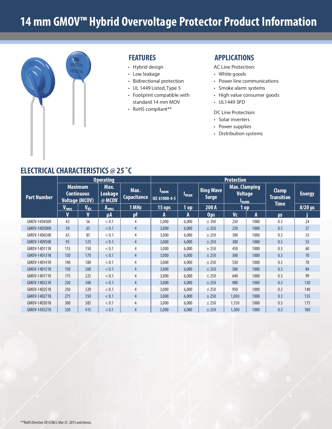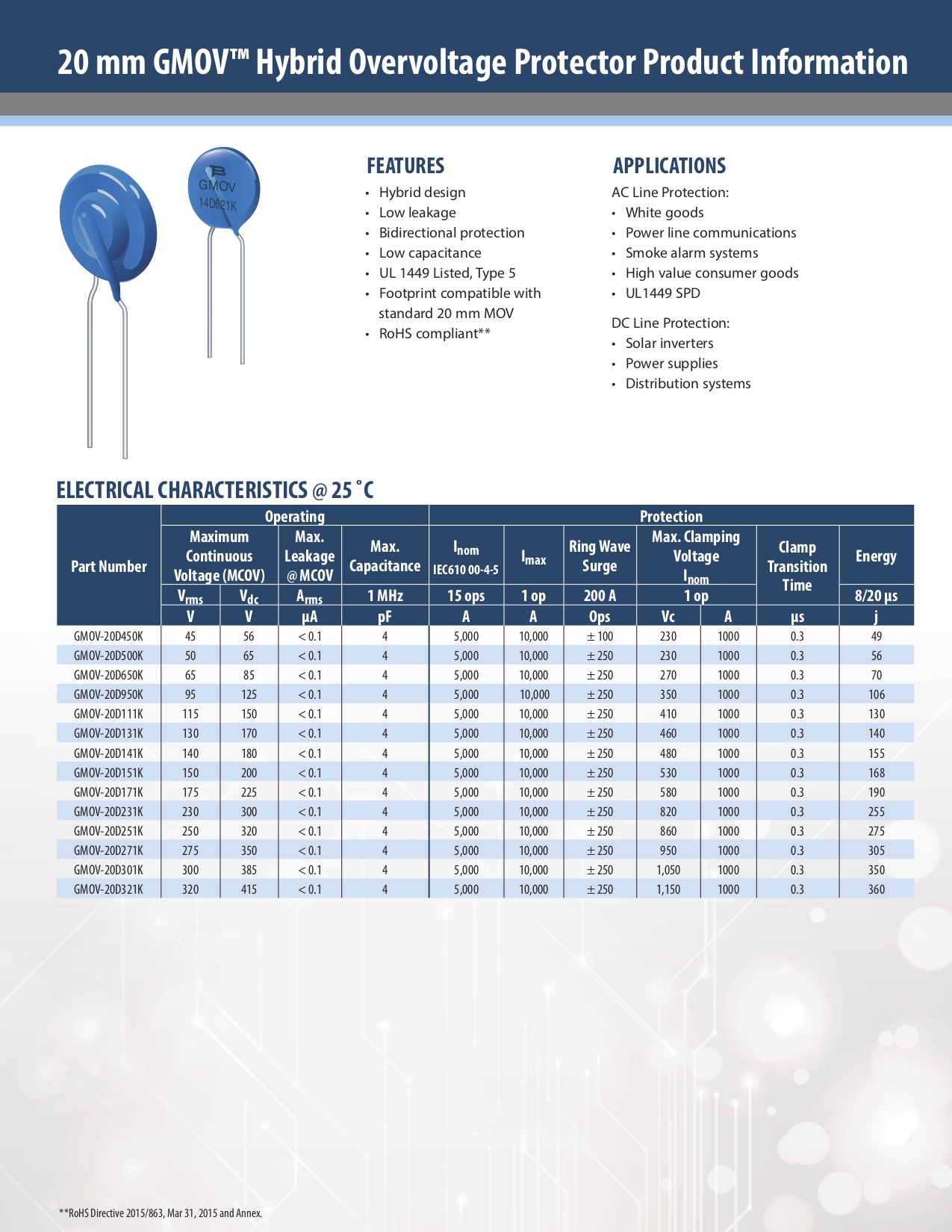 BOURNS: GMOV HYBRID OVERVOLTAGE PROTECTION DEVICE