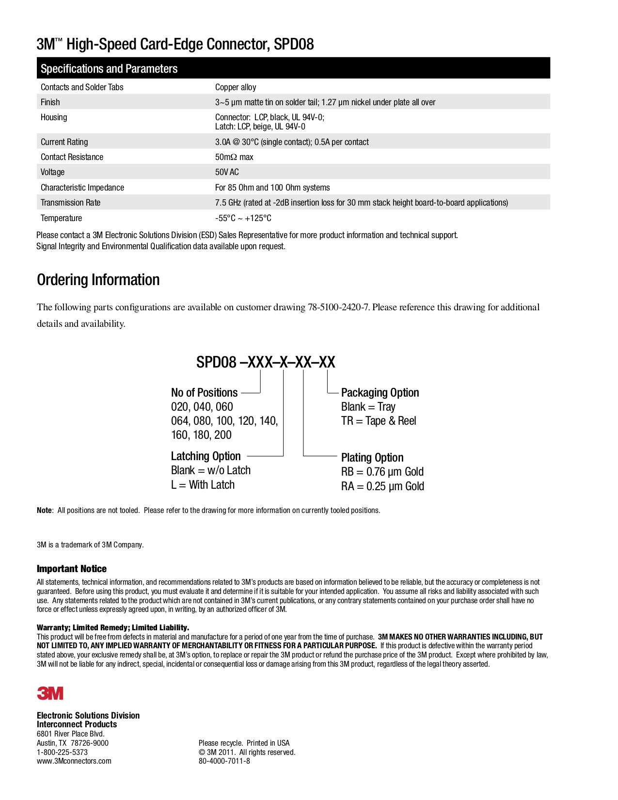 3M – HIGH-SPEED CARD-EDGE CONNECTOR, SPD08