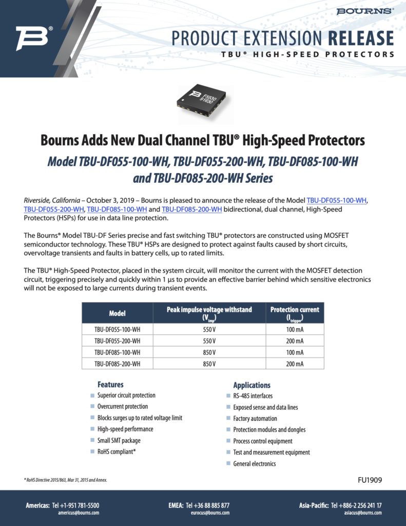 BOURNS ADDS NEW DUAL CHANNEL TBU® HIGH-SPEED PROTECTORS