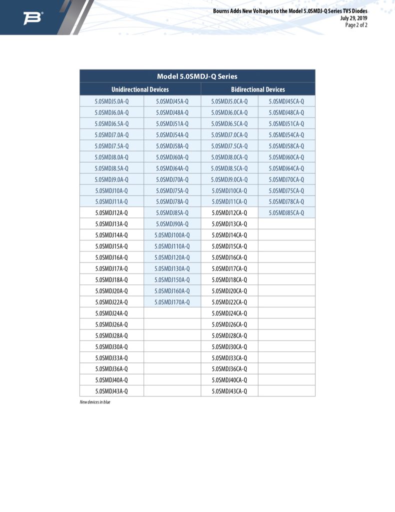 2 Ago 2019 BOURNS ADDS NEW VOLTAGES TO THE MODEL 5.0SMDJ-Q TVS DIODE SERIES da LT2 | pubblicato in: Altro | 0