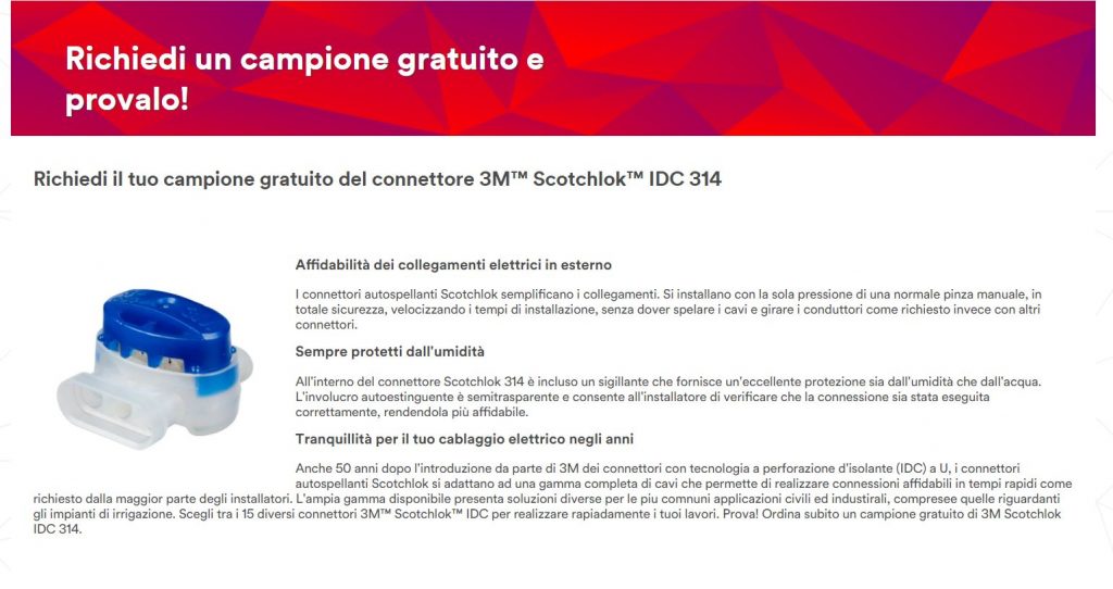13 Set 2021 RICHIEDI IL TUO CAMPIONE GRATUITO DEL CONNETTORE 3M™ SCOTCHLOK™ IDC 314 da LT2 | pubblicato in: Altro | 0