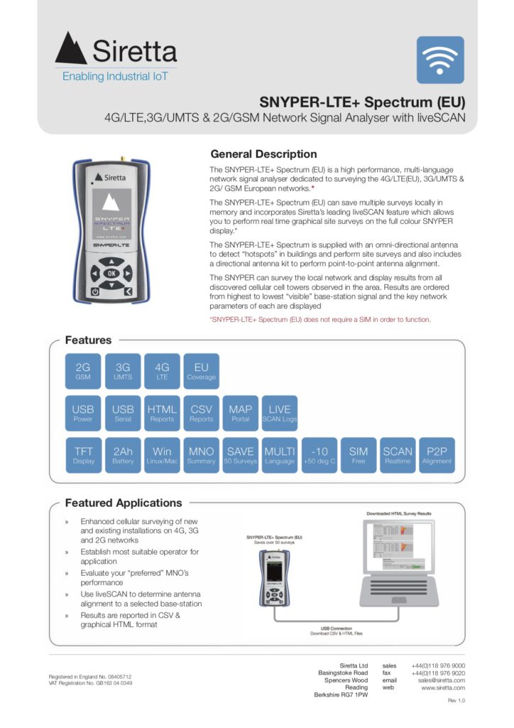 4 Giu 2019 SNYPER-LTE+ SPECTRUM (EU), 4G/LTE,3G/UMTS & 2G/GSM NETWORK SIGNAL ANALYSER WITH LIVESCAN da LT2 | pubblicato in: Altro | 0